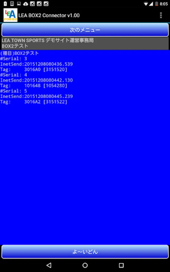 It is an application for delivering the notification and recording of the start time to record cloud · LEA TOWN SPORTS sports. It can be connected to touch-type measuring machines Shifuru Corporation. Measured using the measurement unit, participants will be simplified manner to measure by touch a tag that is attached, such as the arm. The middle point of the trail running, please use the walking competition, and the like.