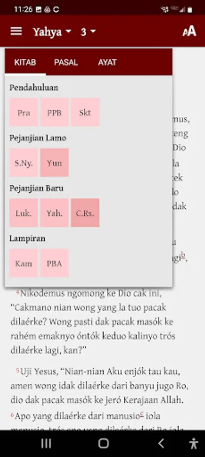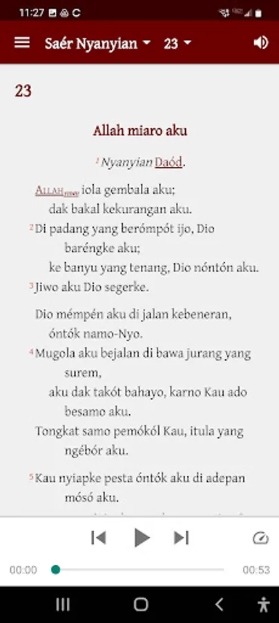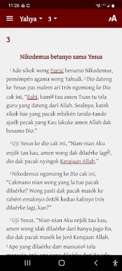 “Alkitab Tejemahan Baso Plembang” adalah sebuah aplikasi yang berisi Alkitab yang telah diterjemahkan ke dalam bahasa Palembang. Terjemahan ini telah dikerjakan secara teliti oleh tim Proyek Woto dan disetujui oleh beberapa orang ahli dan para pemimpin jemaat di gereja-gereja interdenominasi di Palembang.