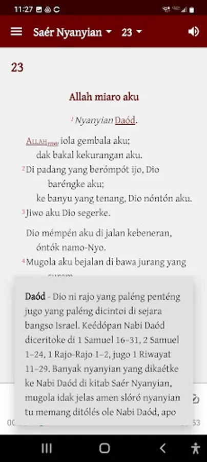 Terima kasih untuk semua staf penerjemah dan mitra pelayanan yang terlibat dengan Proyek Woto untuk mewujudkan aplikasi Android Alkitab Tejemahan Baso Plembang ini sehingga dapat dinikmati secara gratis.