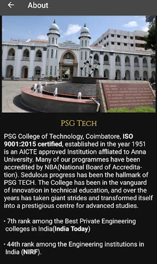 This is the official mobile app of Kriya, PSG College of Technology.