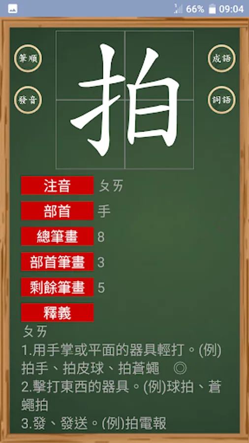 You can watch the animation of stroke order, pronunciation and pronunciation of new words.