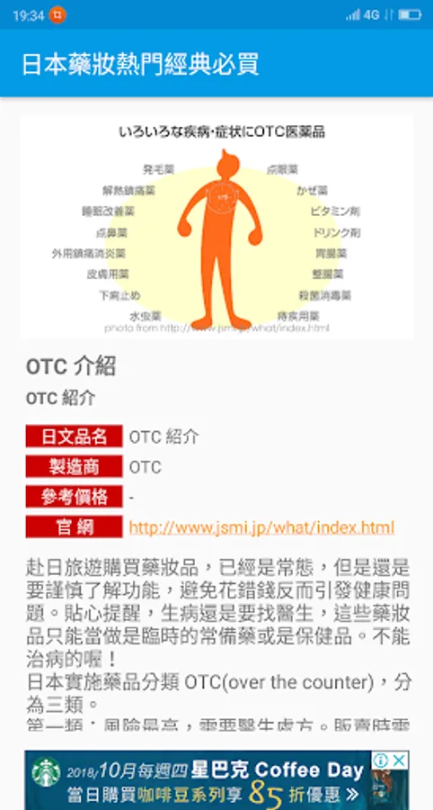 日本實施藥品分類 OTC(over the counter),分為三類。
