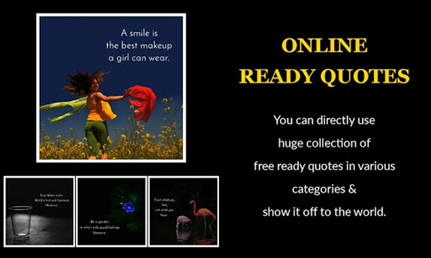 The Quote Creator Create stunning designs with your photos, easily add quotes or multiple text to photos. Change the font, size, colour, spacing, and position. The Quote Creator is a multipurpose content creator app that is a quote maker and card maker can be used to Free design your valuable post content for social networks like Instagram, Facebook, WhatsApp, Twitter etc. If you want to engagement, likes, shares, followers, virality, retweets and all the other good things that come to social media marketers or social media influencer for your photo post then download this Free App. Make birthday wishes card, wedding invitations card, save the date card or make card for every occasion by this app. Create a memorable instaquote or get thousands of ready picture quotes & show it off to the world. Try it for free now to design motivational quotes or design memorable moments of your life or Edit photo or add text to photos. A convenient and functional text on photo editor app. Upload pictures from your device gallery, Camera or pick from our library of cool backgrounds. Share your designs directly to Instagram, WhatsApp, Facebook or simply save to your device. Add Text, Word, Caption & Quote on lots of premium background or on your Photo and add a multiple fonts, colors and styles. The Quote Creator is the best quotes maker or quotes creator and text on photo editor app to create your own photos with quotes or any text message. Write quotes on your picture by this picture quotes editor app. The Quote Creator is the most popular text on Photo editor for you to make your photos look more cool and beautiful with amazing captions. Create unique inspirational Photo with your own feelings. You can also use this app as a Shayari maker, Lovely Status Maker or Shayari creator App. Best way to create your feelings or emotions as a message with Text on Photos by this Free Quotes background maker Android app. You can caption your words and memories on your favorite photo. Simple but the most useful App for Photo Editing and Text on Photo. Browse Ready Quotes and Share it with your Friends. Create and share personalized greeting card for all festivals and special days.