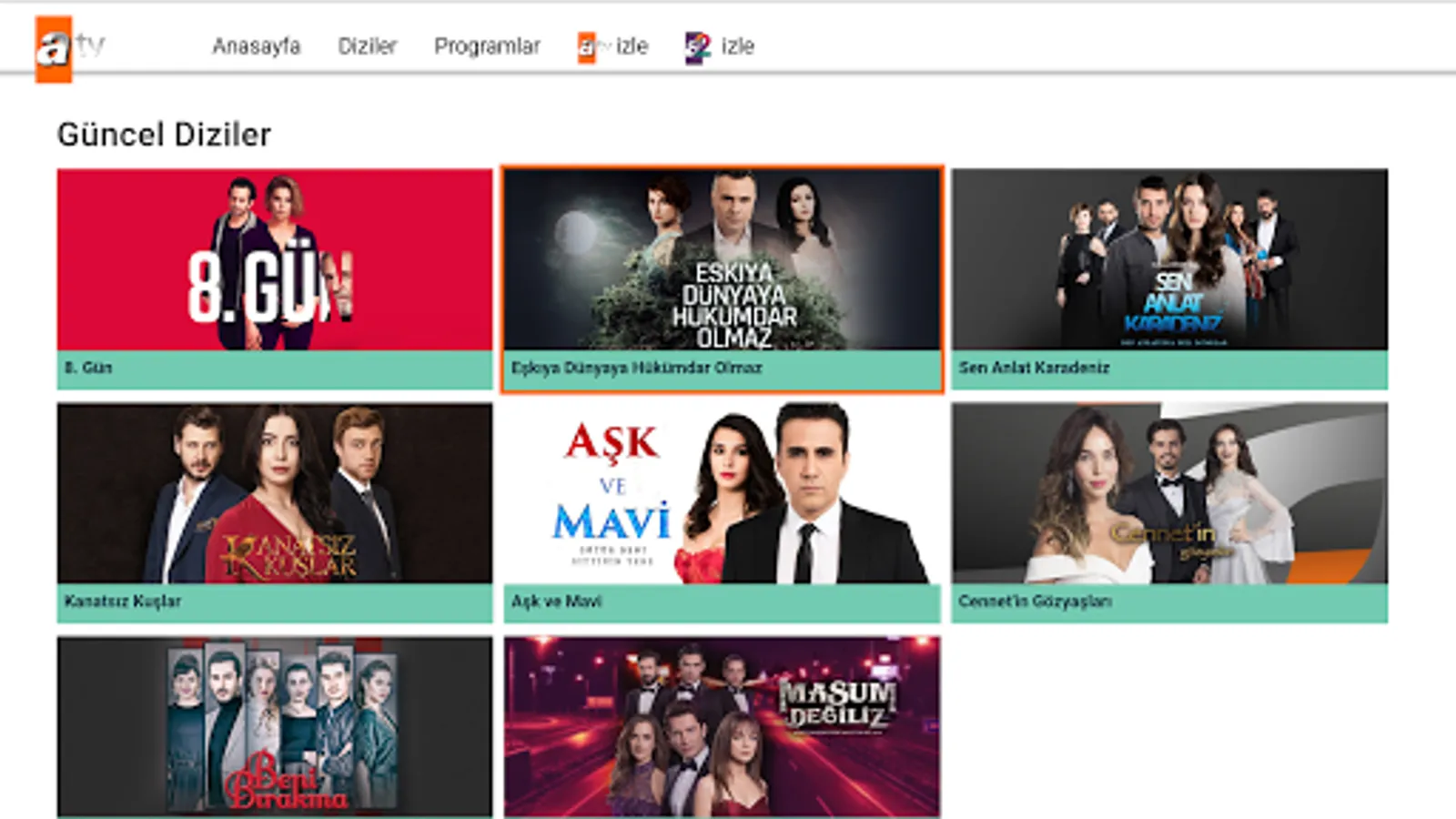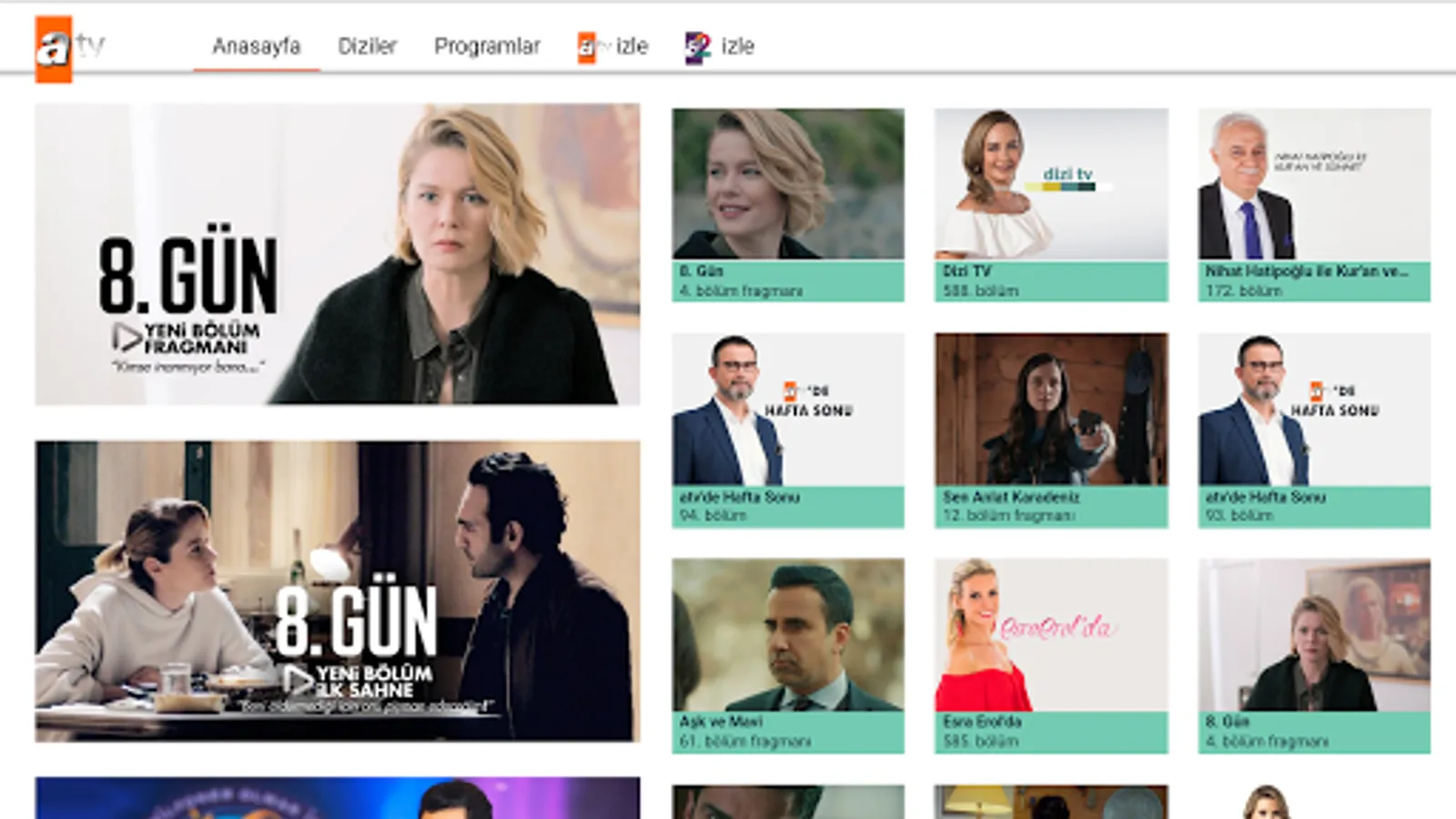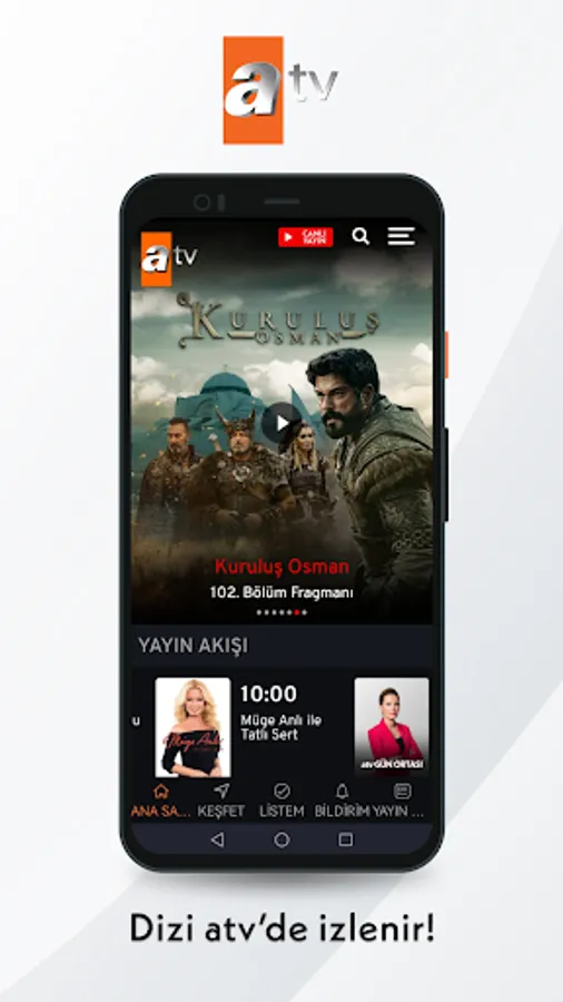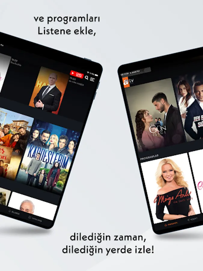 With the renewed ATV application, you can watch your favorite TV series whenever and wherever you want. You can watch atv series and atv live broadcast for free, as with all other content. Easily access atv's current broadcast stream, episodes of the TV series you missed, newly released trailers and special videos. If you don't want to miss your series, you can get notified when it starts. Atv's renewed application is always with you with HD image quality for different contents.
