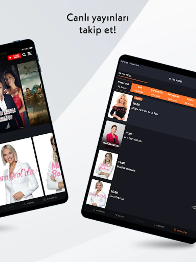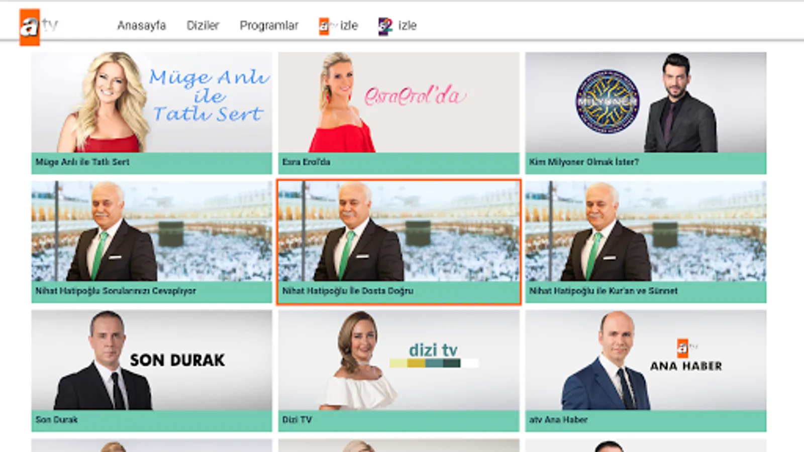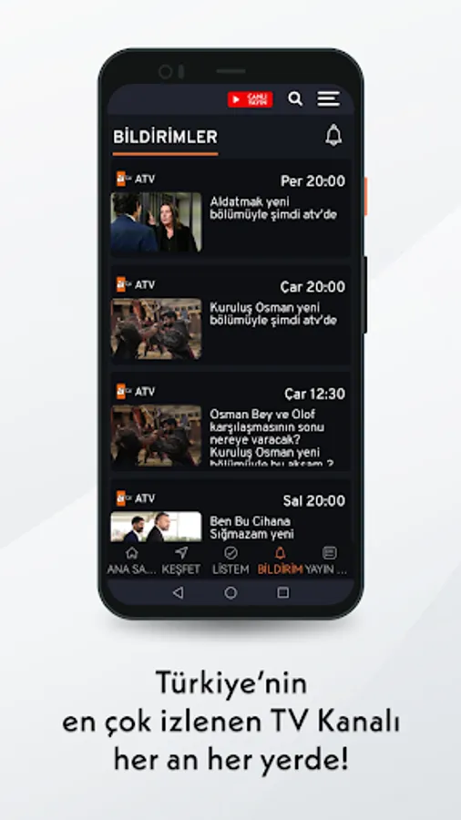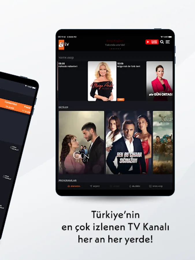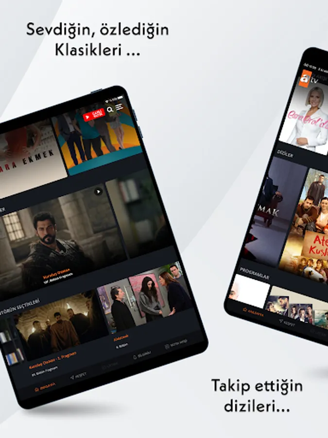 With the renewed ATV application, you can watch your favorite TV series whenever and wherever you want. You can watch atv series and atv live broadcast for free, as with all other content. Easily access atv's current broadcast stream, episodes of the TV series you missed, newly released trailers and special videos. If you don't want to miss your series, you can get notified when it starts. Atv's renewed application is always with you with HD image quality for different contents.