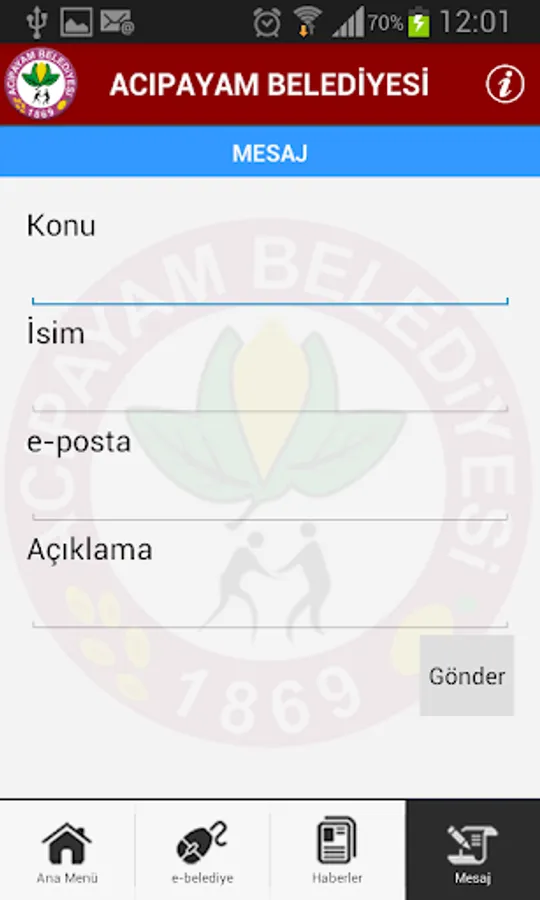 Municipal Municipal Acıpayam Mobile application. With this application Acıpayam residents, municipalities will be accessed at any time through smart mobile devices, will be able to follow their debts, their complaints and requests from wherever they want, whenever they are able to transmit.