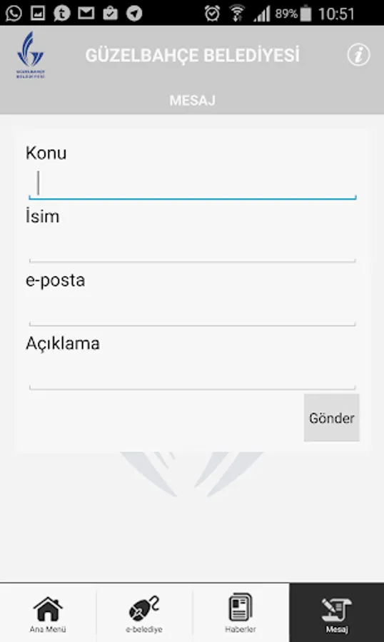 Urla Municipality, the Municipal Mobile application. Güzelbahçe residents with this application, thanks to smart mobile devices will reach the municipality when they wish to pursue their debts, requests and complaints from the place they want to be able to transmit at any time.