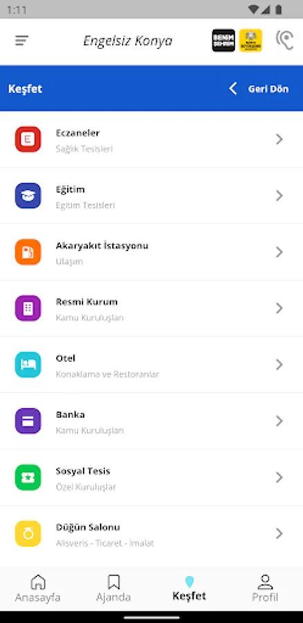 It is the menu that allows our citizens to access the locations defined in the application (disabled charging station, taxi stand, mosque, touristic point, etc.). If desired, it can get directions to these locations, give feedback about the location and display it on the map. In addition, by defining the areas suitable for the access of the disabled (cafe, restaurant, public WC, playground, etc.) to the system, the disability status and location of the disabled can be viewed from the closest to the farthest.