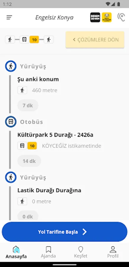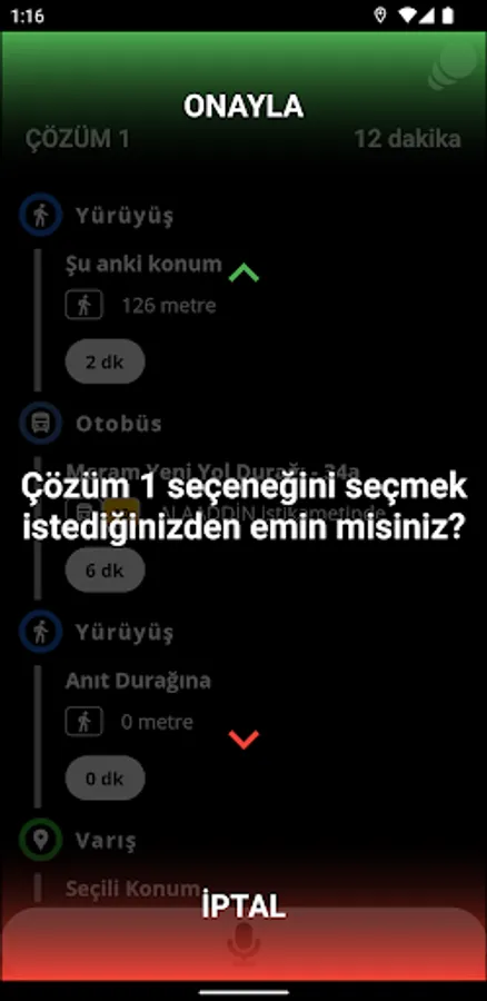 Alternative routes created by using public transportation between the current location of our citizens and the location they want to go are shown, and it assists the journey in an audio and visual way.