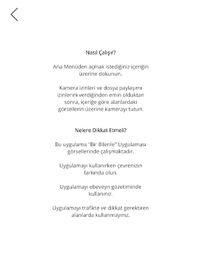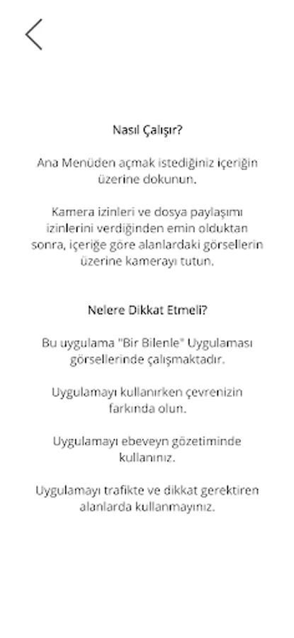 Please pay attention to your surroundings while using the application. Do not use the application in hazardous areas. Use the application under the supervision of a parent.