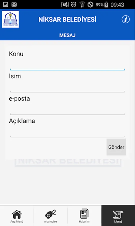 Niksar is a mobile application municipality. With this application Nikser residents, thanks to smart mobile devices will reach the municipality when they wish to pursue their debts, requests and complaints from the place they want to be able to transmit at any time.
