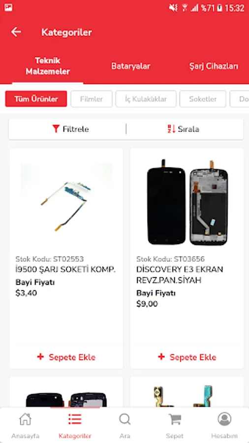 * Ürün kategorilerinde filtreleme yapabilirsiniz