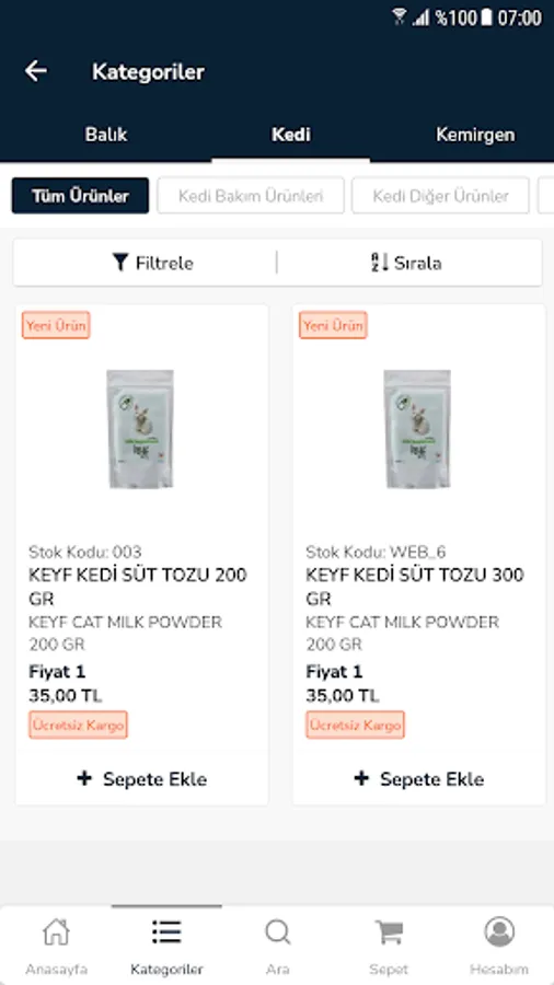 * You can filter by product categories.