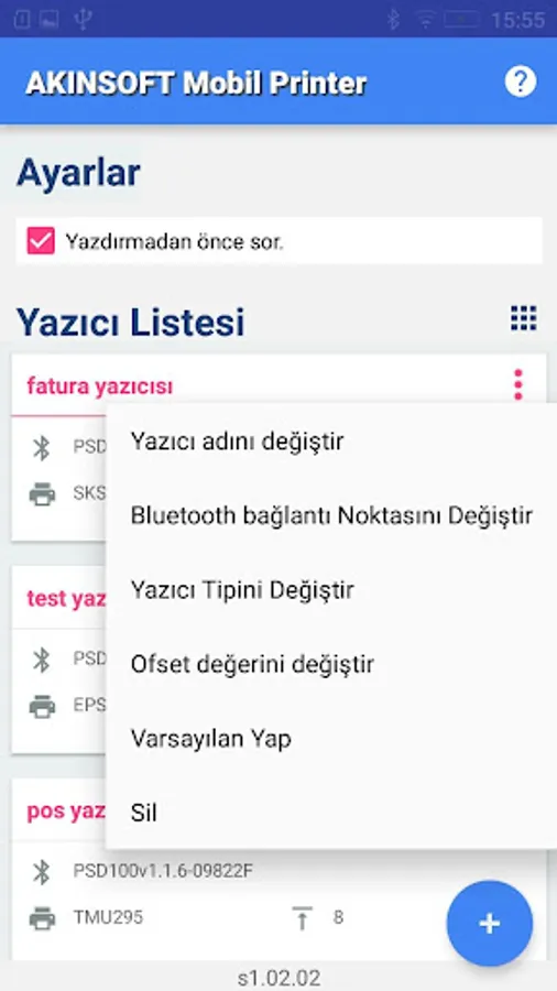 * You can define new bluetooth printer, new network printer or new serial & port (for devices carrying integrated printer on android pda) printer.
