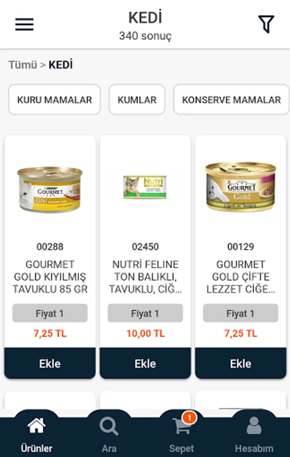 * Ürün kategorilerinde filtreleme yapabilirsiniz.