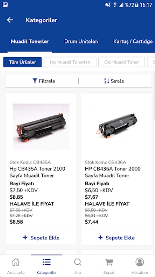 * You can filter the product category.