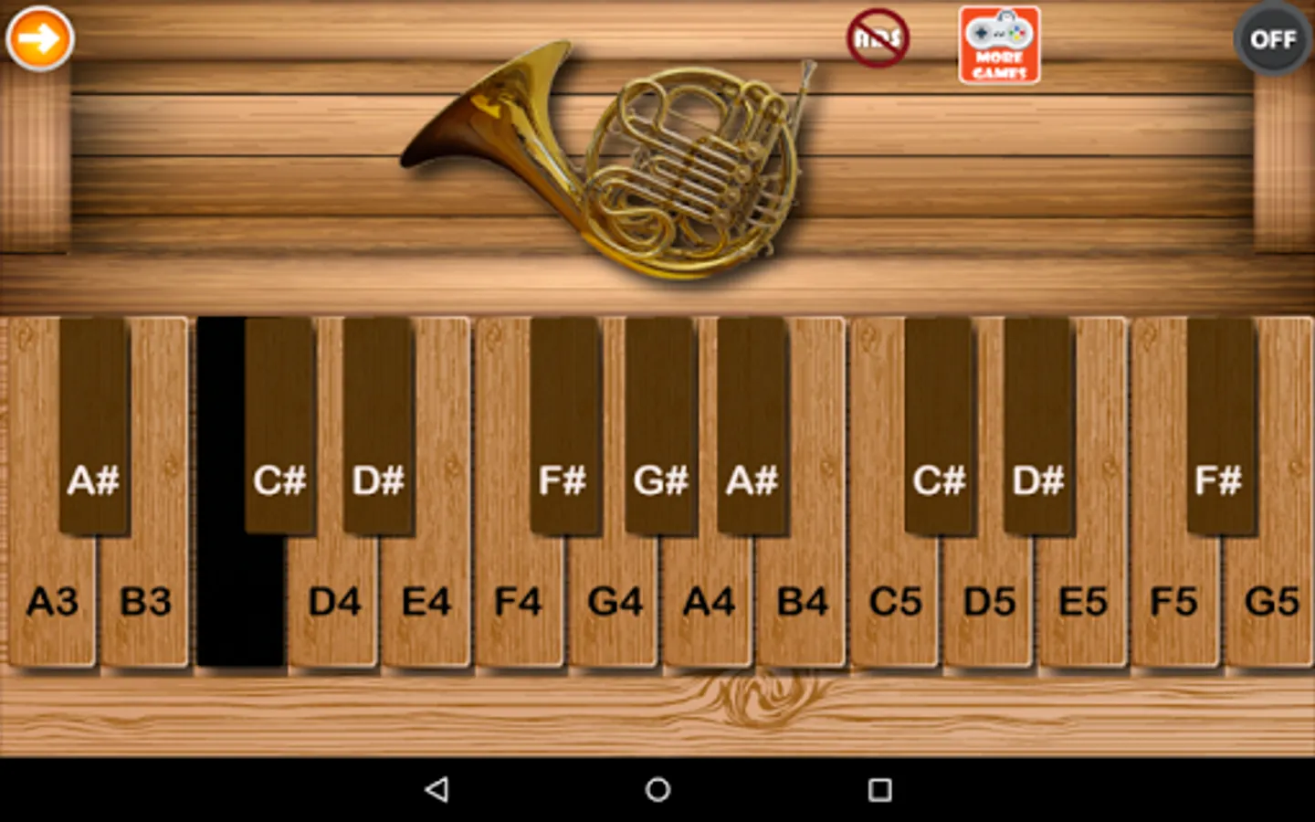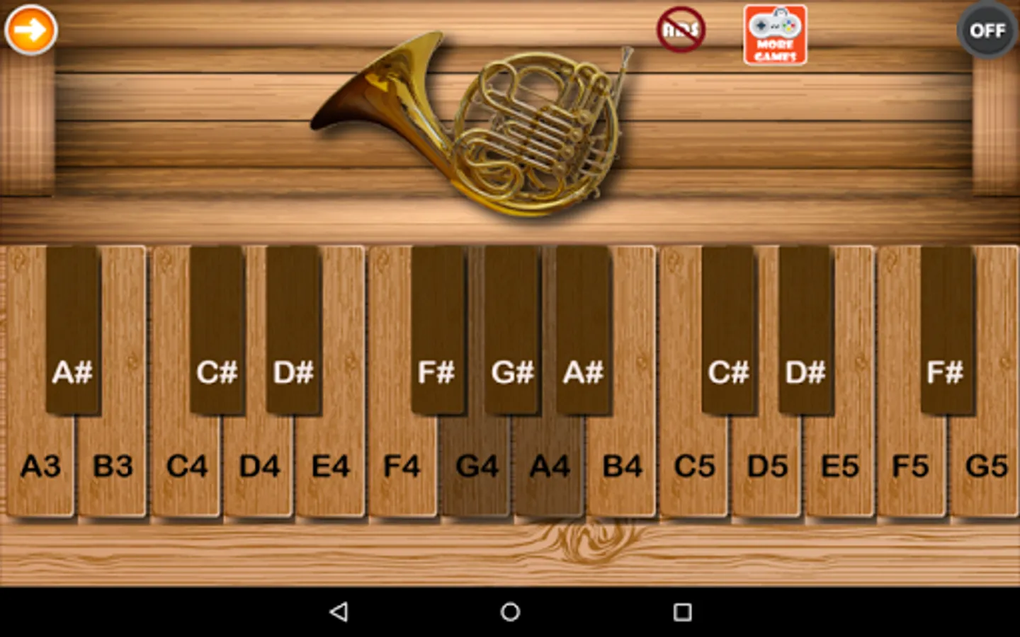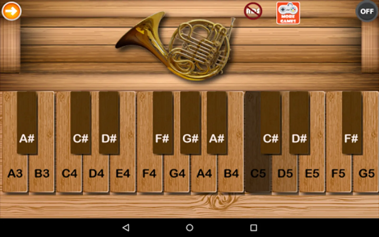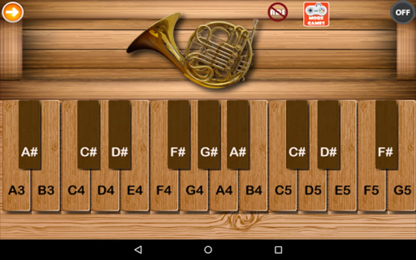 This is a Virtual French Horn application for android mobile phones and tablets. High quality sounds from a philharmonia orchestra, New and noteworthy featured app, Multi-touch lets you play chords. Good quality of screen resolution.