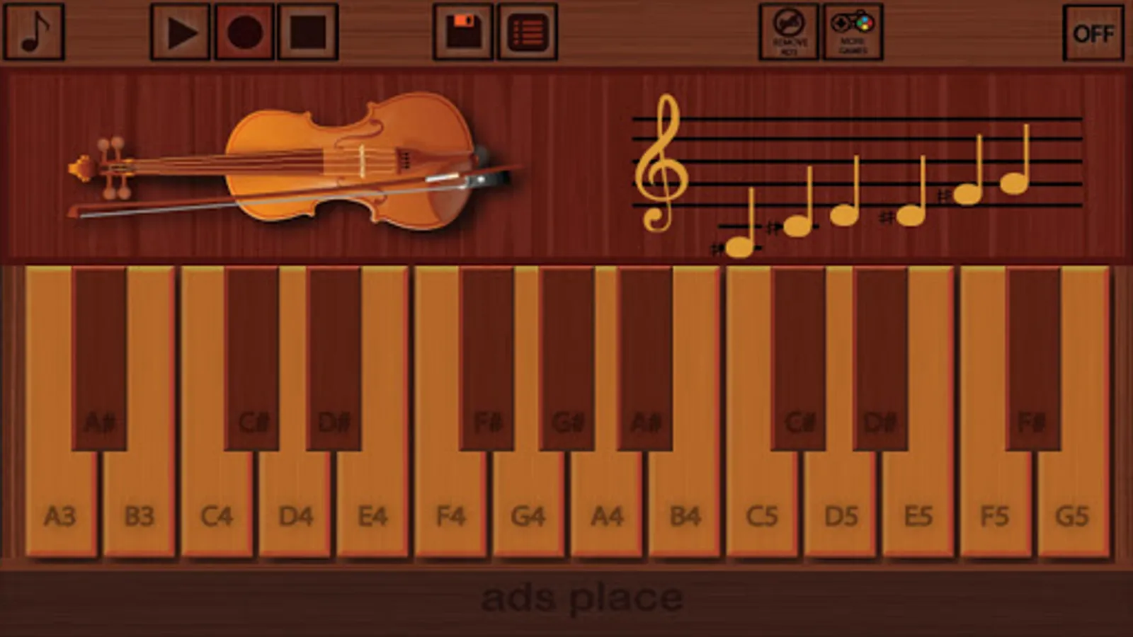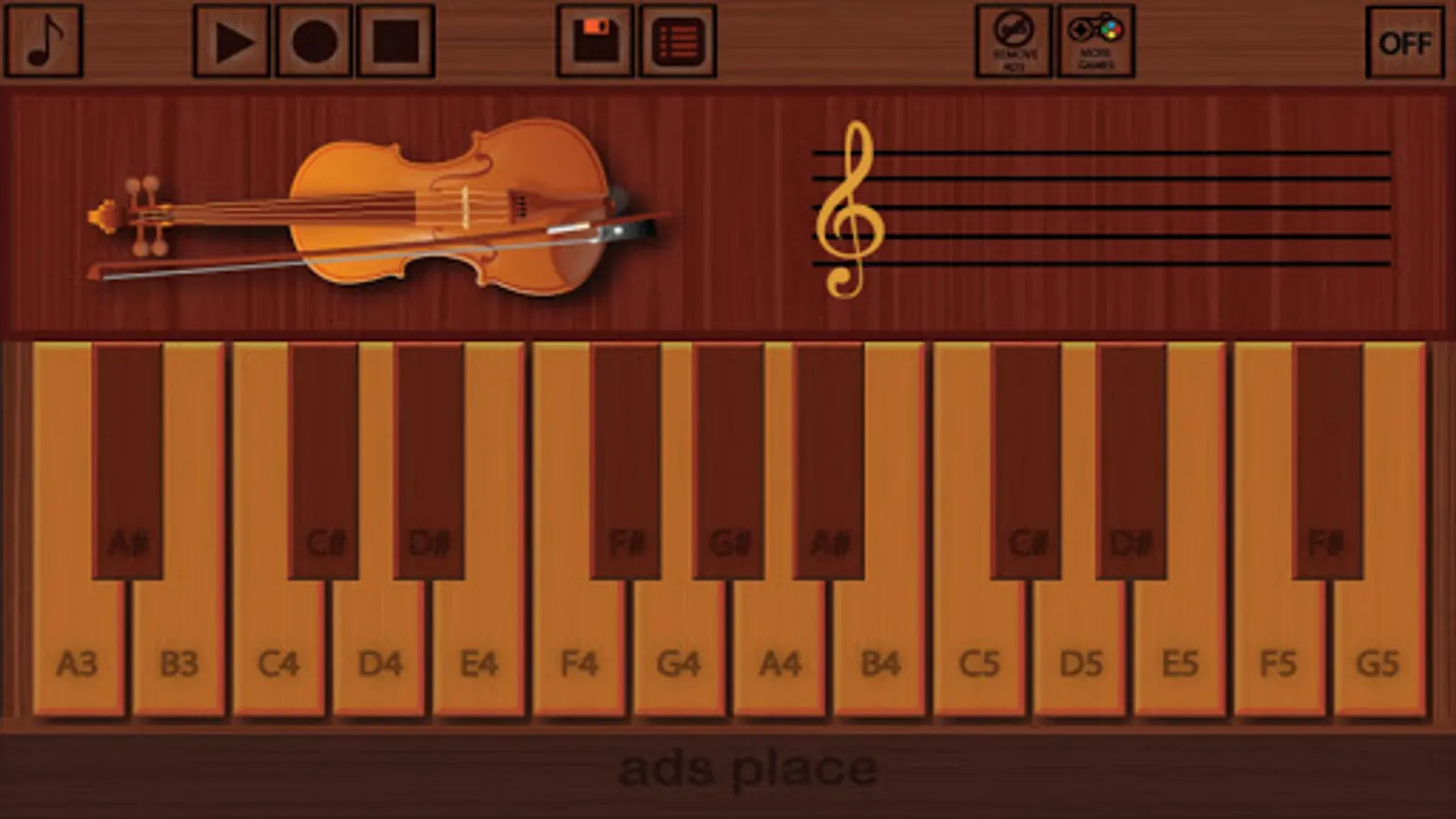 This is a Virtual Violin application for android mobile phones and tablets. High quality sounds from a philharmonia orchestra, New and Noteworthy featured app, Multi-touch lets you play chords. Good quality of screen resolution.