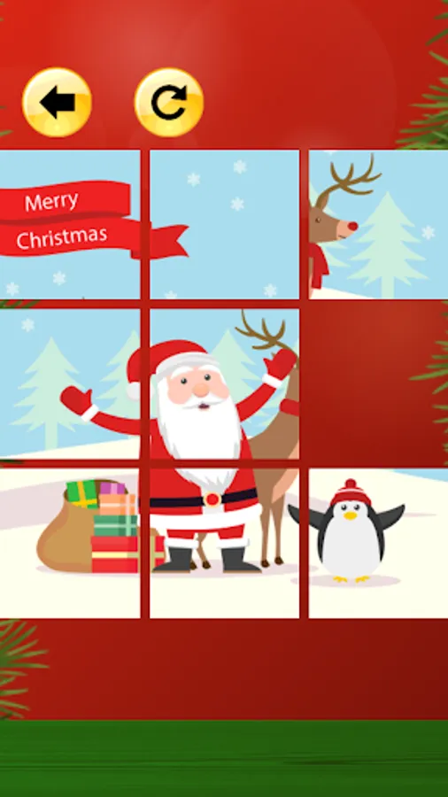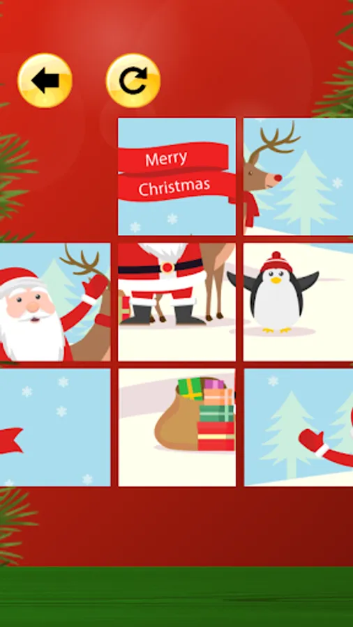 There are a lot of christmas slide puzzle in this game. Hohoho, Mery Christmas all of you. A sliding puzzle is a tour puzzle that challenges a player to slide (frequently flat) pieces along certain routes (usually on a board) to establish a certain end-configuration. The pieces to be moved may consist of simple shapes, or they may be imprinted with colors, patterns, sections of a larger picture (like a jigsaw puzzle), numbers, or letters.