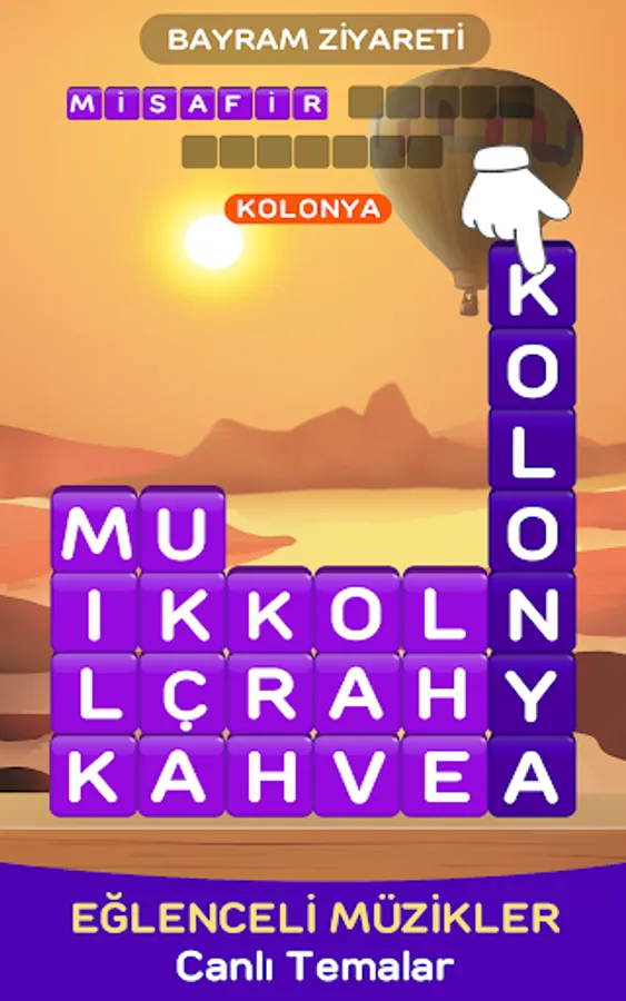 Tıpkı A Word’de olduğu gibi gizli zeka oyunu deneyimi sizi bekliyor. Canlı arkaplan sayesinde bir yandan sözcük bulup bir yandan da farklı tema bölümlerini deneyimleyeceksiniz. En eğlenceli zeka oyunu ücretsiz yeni tarz Kelime Oyunu olacak! 🤓