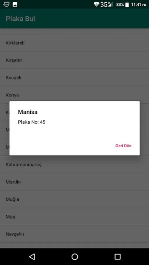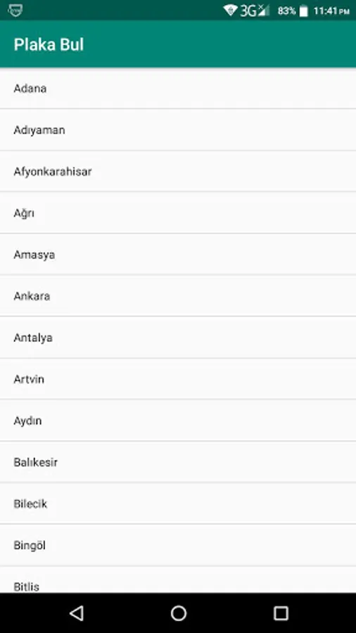 It contains a list of the 81 provinces in Turkey. When you click province each, it shows the license plate number.