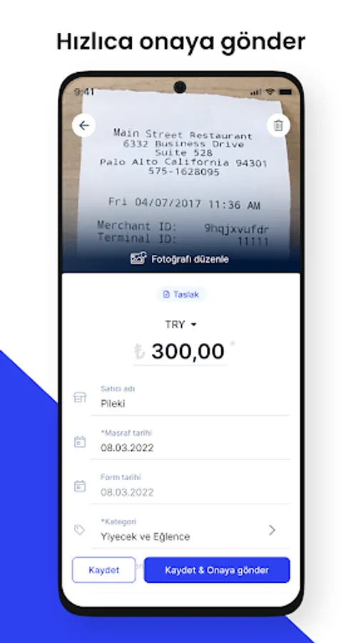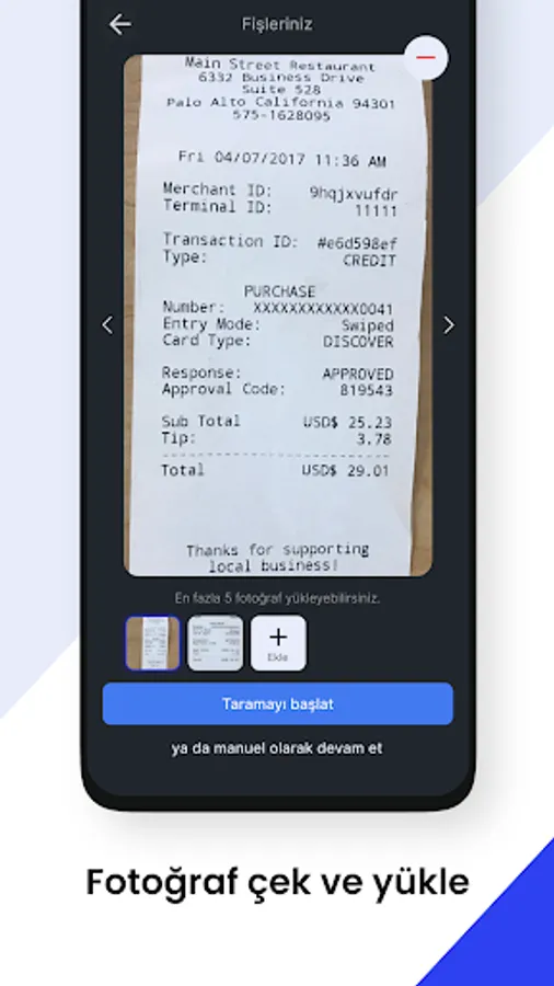 1. Employees take pictures of their receipts and the artificial intelligence supported scanning system ensures that the expense is generated automatically.