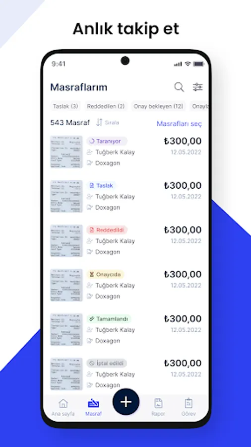 2. Allows the approval flow to be managed flexibly on an organizational or project basis; Thanks to the approval flow designed according to the organizational structure of the company, the employees make the expense entries and it is ensured that the whole process can be completed within the approval flow.