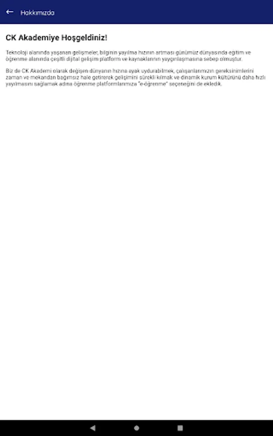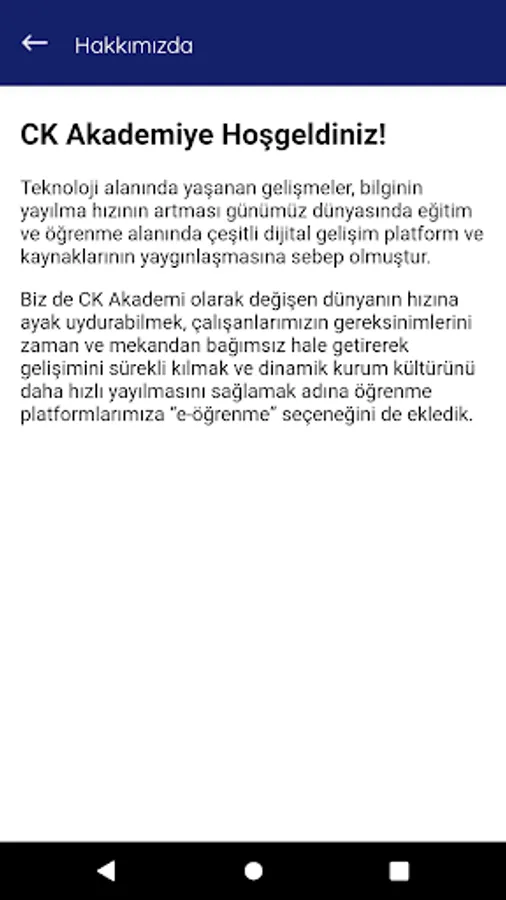 CK Academy Mobile Learning Platform is an application that allows viewing of online trainings offered by CK Academy via mobile devices. It aims to support professional, technical and competency-based developments related to our sector.
