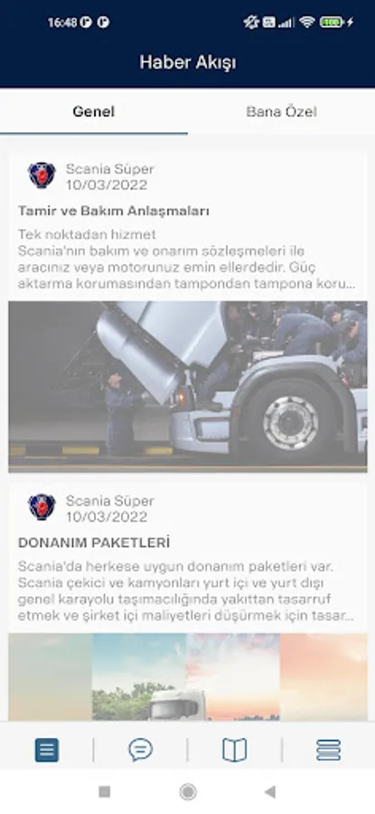 Scania Super is an application for internal communication, exclusive to Scania employees, where internal news, announcements, current campaigns and price lists are shared.