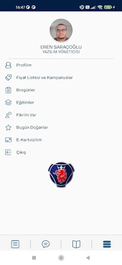 Thanks to Scania Super, you can share your business card with your customers and message other Scania teams.