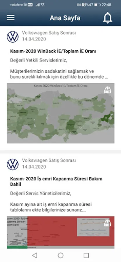 You can follow all processes of Volkswagen after-sales services and instantly access updated announcements and reports.