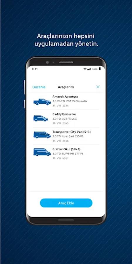Volkswagen Commercial Vehicles application makes the life of commercial vehicle users easier with features such as managing your vehicles and their permanent users, viewing the nearest authorized dealer and service, easily making an online service appointment by seeing your discount rate, and viewing the maintenance history of your vehicles. Features such as live roadside assistance and warning symbols meanings will be in your pocket soon! Download now and start benefiting from special services for Volkswagen Commercial Vehicle members.