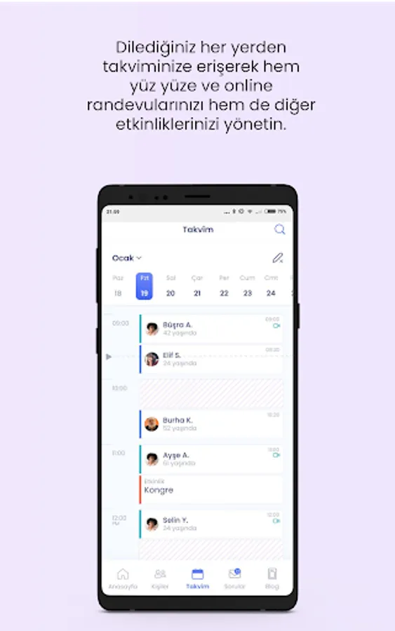• Save your time with evital pro. By downloading our mobile application, you can access your calendar from anywhere, manage both face-to-face and online appointments, and join your online meetings via your smartphone without the need for any additional setup.