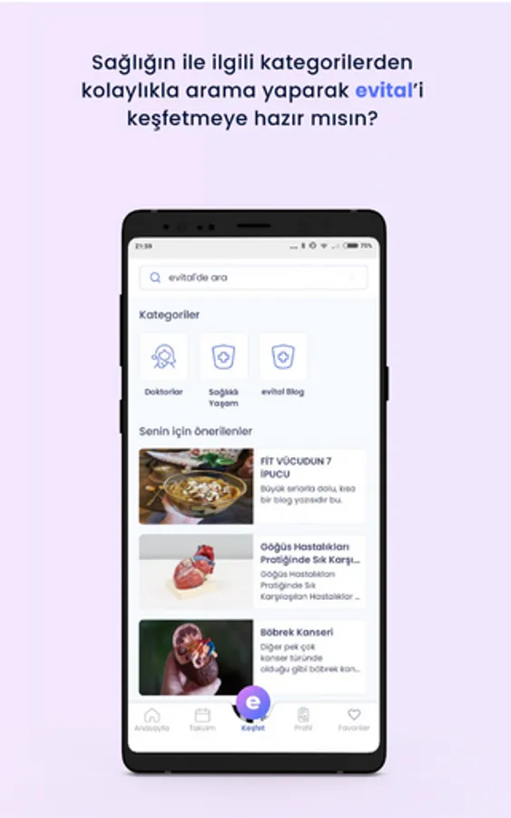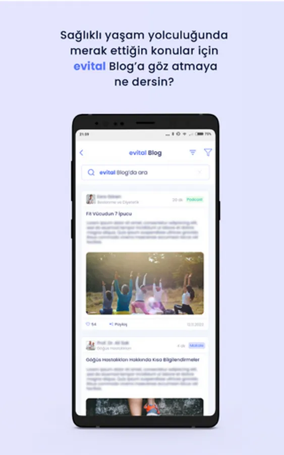 Evital is always with you on your healthy life journey! You can review articles, videos and podcasts shared by health professionals on topics you are curious about and health.