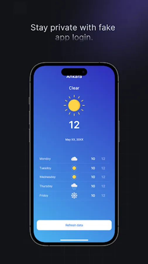 You can also choose to have Grooz Vault display a fake entry that resembles a weather, antivirus, or calculator app when it is launched. The buttons on the fake entry screen will deceive potential spies, and to proceed to the actual Vault entry, you will need to long-press the logo on the screen 😎