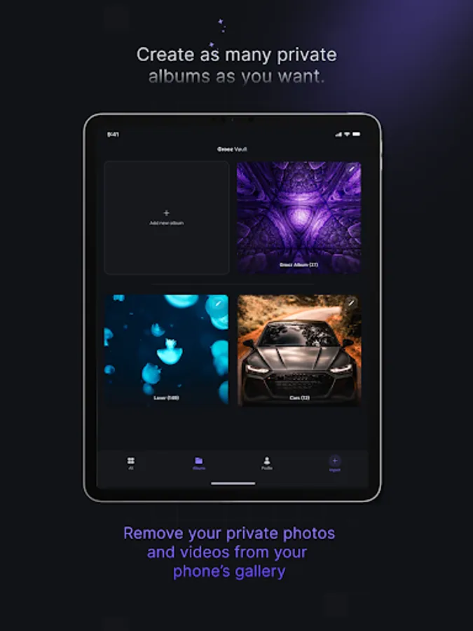 You can use Grooz Vault for free with some limitations. For example, you may have a limit on the number of files you can add to the cloud (up to 200 files) and may not be able to use the Fake Vault feature.