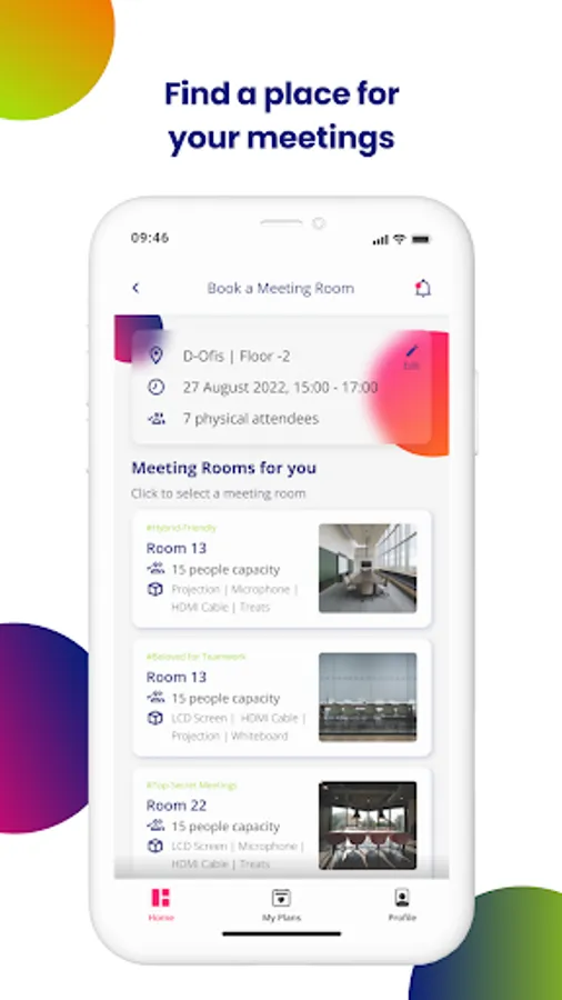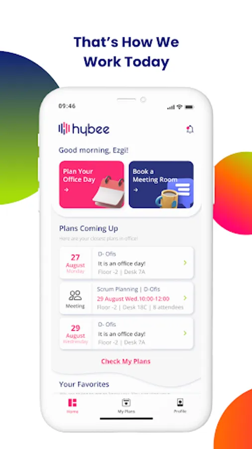 With Hybee hybrid work software, you can have a unique office experience. Our user-friendly app helps you to arrange your office day easily as you can reserve desks and meeting rooms.
