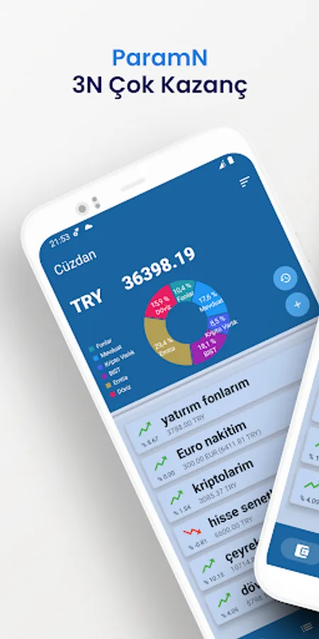 With the ParamN application, you can view your investment instruments (mutual or pension funds, stocks, foreign currency, gold, crypto money) with a single application, enter your purchase transactions and see your average cost and your gross profit in your sales transactions.