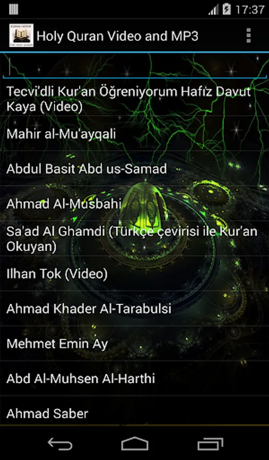 Holy Quran video and MP3 allows you watch video and listen to mp3. You can follow the verse on video. The Holy Quran allows you not only listen hundereds of different swots but also provides a way to follow the verses simultaneously.
