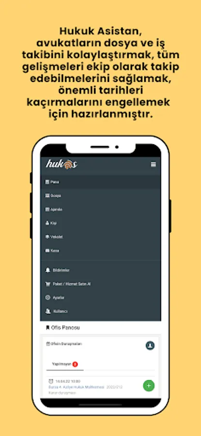 Legal Assistant has been prepared to make it easier for lawyers to keep track of files and work, to keep track of all developments as a team, to prevent missing important dates, and to simplify accounting and current account follow-up.
