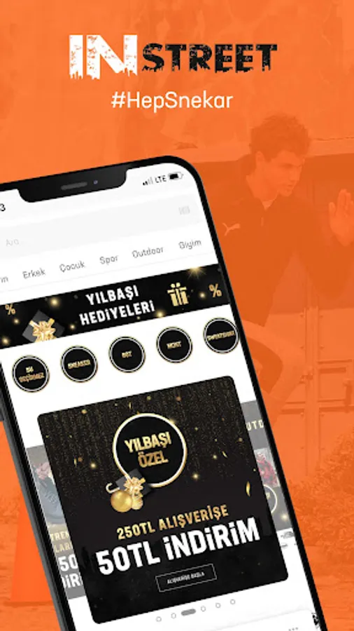 It is possible to find everything you need in the instreet mobile application! There are dozens of brands' products in different categories for men, women and children. Sneakers, sports shoes, running and walking shoes, daily shoes, boots, boots, sandals, slippers and outdoor products are among those waiting for you in the in street mobile application.