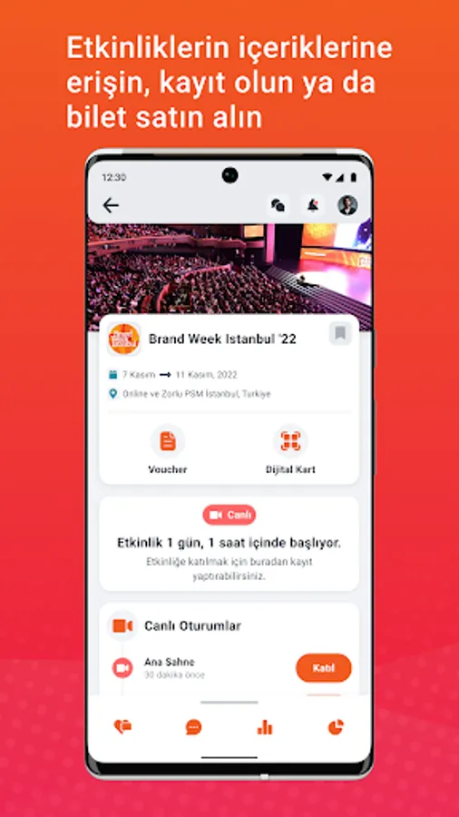 By using Kapital Events, you can reach details about all the events we have organized (program, calendar, speakers, etc.) and buy tickets for any event. The application allows users to quickly access events and interact with other participants.