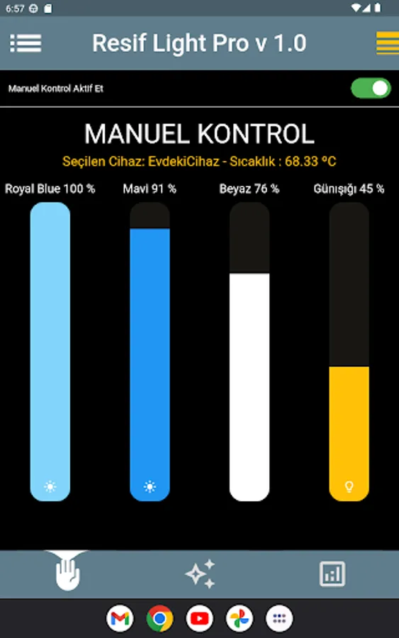 Day Simulated Lighting System, You can control the aquarium lighting wherever you are, and you can manage it from anywhere without being at home. You can also find out the water temperature and lighting system temperature.