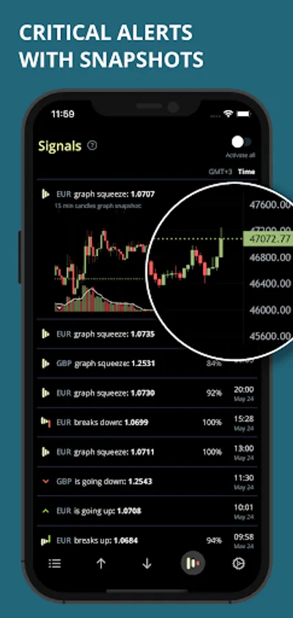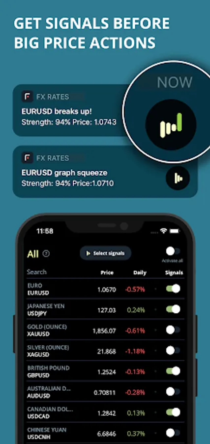 It's a really good idea to delegate this work to the machines instead of getting lost in the graphics all day. Starting at that point, we have created a useful mobile app for ourselves. Thanks to API connections we have established with major exchanges, FX Rates Forex Signals tracks and analyzes flowing data much more efficiently than humans. It detects the squeeze patterns on the graphics lightning-fast and sends immediate notifications: coin alerts!