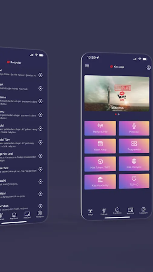 Listen to Kiss FM, Kiss Türk, Kiss Dance, Kiss Genç, Kiss Gold, Kiss Gold Türk, Kiss Egenin Sesi, Kiss Beatbox, Kiss Music, Kiss Mixtape, Kiss FK broadcasts live on "Kiss App", and access the podcast and DJ set archive. , stream, follow weekly Top 40 music charts. Follow selected news from the World of Kiss.