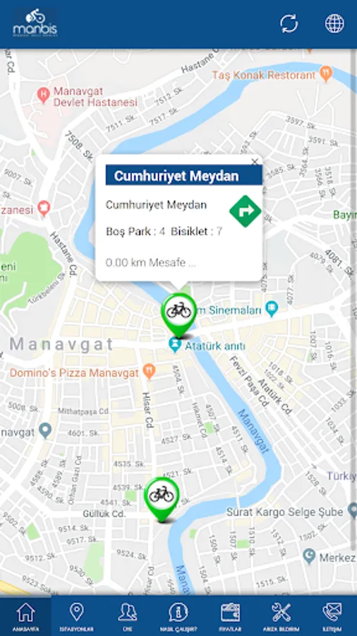 4. You can find out the price list for bicycle usage in the Prices menu.