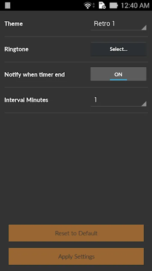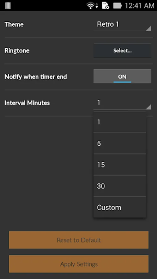 Timer HD has predefined intervals but you can set your custom interval for minutes.