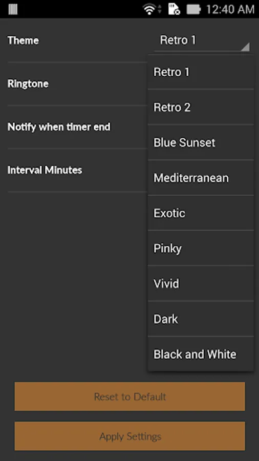 When counting down, your screen color will change slowly as a hourglass. Also you can set color themes in settings.