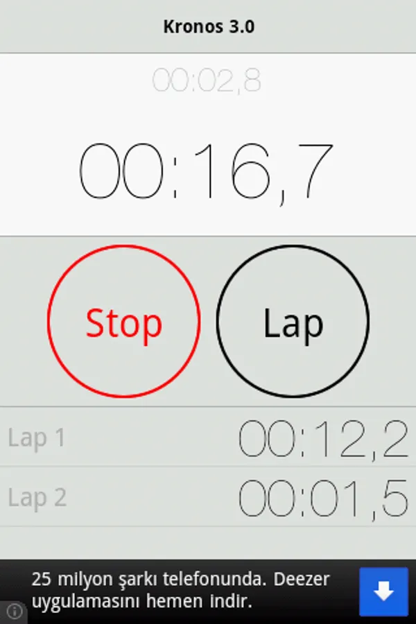 Kronos StopWatch has a uniqe design IOS 7 style. Kronos StopWatch has lap counting and lap list property.