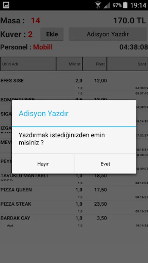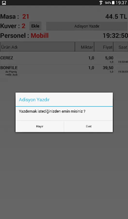 Mobex - is an order taking program for Mobill Addition restaurant software produced by the Mobile Commercial Systems company. The application on the device communicates with the program named MobillSync on the server. so it is not suitable to take orders alone.